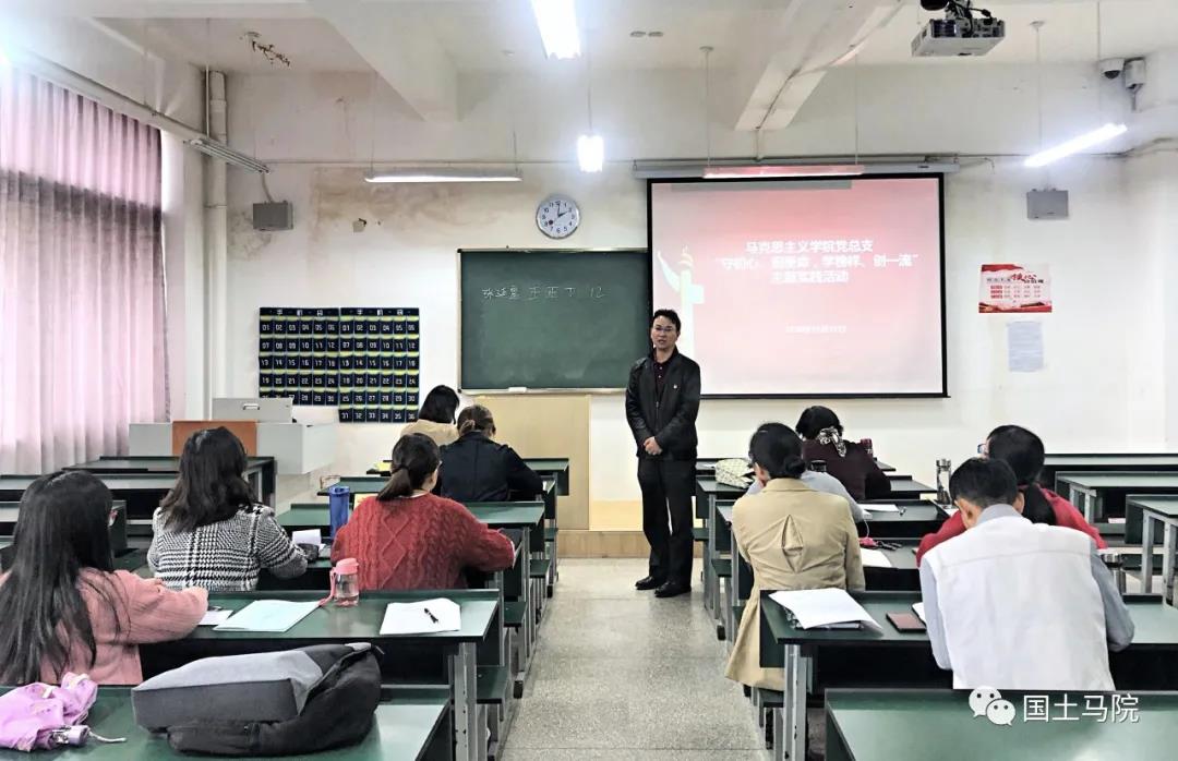 党委副书记王国彦为马院教师讲党课,强调严肃党内政治生活,加强实践锻炼,对标张桂梅先进事迹找差距,张桂梅身上的情怀、坚持、担当、从带领到引领的高尚品质,值得每一位马院教师学习。王副书记强调,马院教师要以“四有”好老师的标准要求自己,做有理想信念、有道德情操、有扎实学识、有仁爱之心的“四有”好老师。守初心、担使命,这是时代的要求、实践的要求、人民的要求,上好思政课,建高水平马院,这也是学校党委对每一位马院教师个人的要求。
