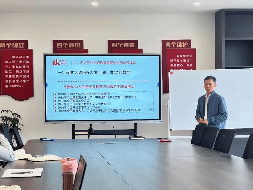 党总支委员、副院长周先阳领学了习近平总书记教育重要论述。带领大家学习领悟习近平总书记关于搞好教育的必须要做到九个坚持,明确为谁培养人、培养什么人、怎样培养人的问题,强调做“对的教育”,做“好的教育”,做“强的教育”。强调“德”是育人育才的根本,重视劳动教育,要从六个下功夫,用“极端重要性”表述了教师工作的战略定位。