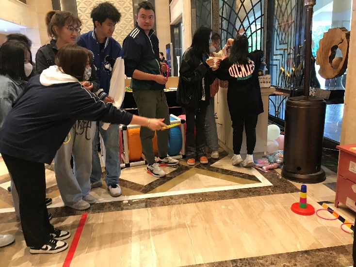 制作完精油皂,同学们来到户外开展团体活动,团体活动分两部分进行,老师和同学们围坐在草地上开展团队大考验活动和个人才艺展示,同学们积极参与,大方展示才艺;还有同学在老师的带领下排队参加套圈活动,同学们大显身手并赢得了自己心仪的小礼物,拿到礼物的同学心里乐开了花。最后,同学们在指定区域进行自由活动,有的和老师交流生活、学习问题,有的三五成群拍照留念,用手机记录下这难忘的一天。