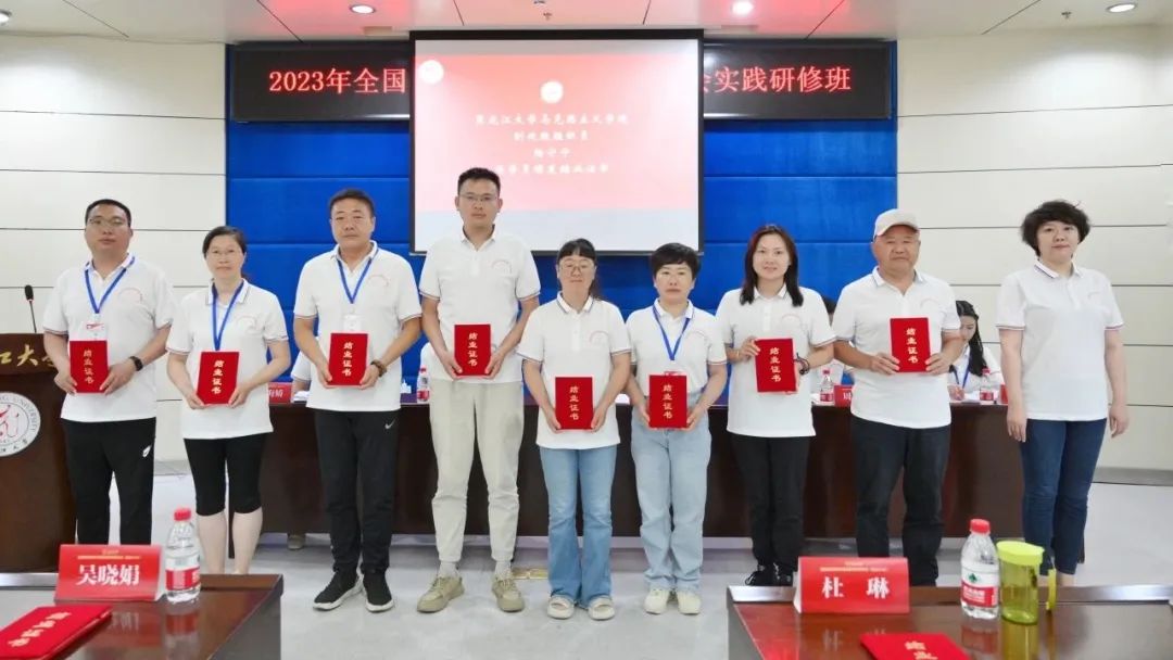 研修活动结束后,第二期研修班在结业式在黑龙江大学taptap点点官方网站举行,带班班长衣海娇在研修班结业以上指出,本期研修班理论教学和实践教学紧密结合、教学效果显著,教学方式灵活多样,实践研学感悟深刻,达到了预期目标,圆满完成了各项研修任务。通过本次研修,增强了思政课教师对习近平新时代中国特色社会主义思想在黑龙江生动实践的认识。