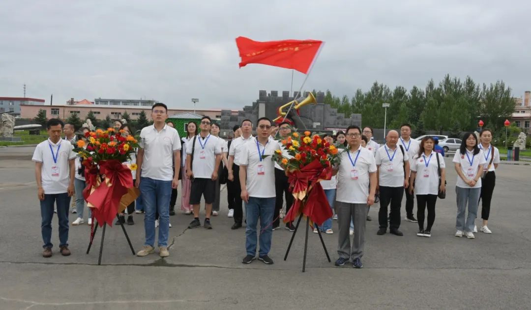 在双城区三五将军文化园向东北民主联军将士纪念塔前举行敬献花篮