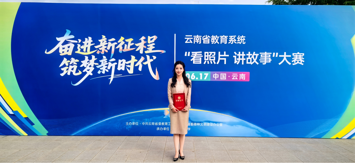 在刚刚结束的2025年云南省教育系统“奋进新征程 筑梦新时代——看照片讲故事”大赛中,我院青年教师慈曾妮演讲作品《你护山河无恙 我等你平安回家》荣获教师组一等奖。
