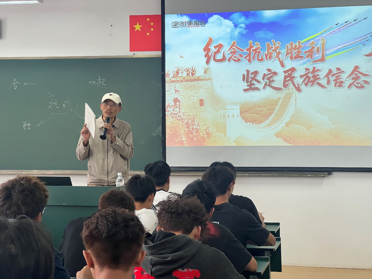 党委委员、统战部部长刘燕以“纪念抗战胜利 坚定民族信念”为题,从完整的历史叙事,到崇高的精神提炼,再到现实的国际观照,最终落脚于青年的责任担当。引导青年学生:铭记历史,以抗战先辈为镜,将个人的拼搏融入国家发展与人类进步的事业中,用知识与创造力去捍卫来之不易的和平,开创共同的美好未来。